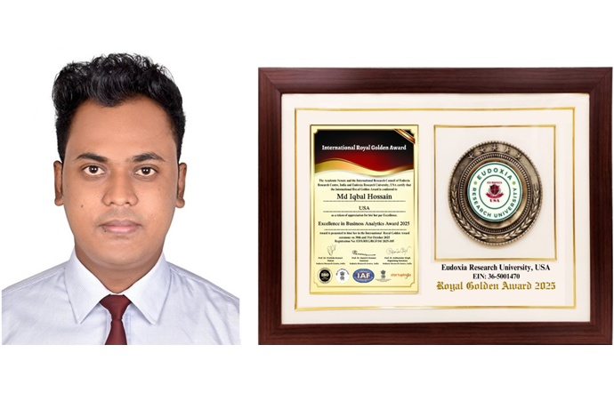 At the prestigious International Royal Golden Fellow Award 2025 Ceremony and the Fourth International Conference on Multidisciplinary Research Trends in European, Asian and African Countries (IRTEC 4.0, 2025), held on October 30–31, 2025, the selection committee reviewed numerous high-quality research submissions. Among these, Md. Iqbal’s research abstract stood out for its depth, relevance, and alignment with the conference theme. As a result, he was selected as one of the distinguished recipients of the Excellence in Business Analytics Award – 2025, conferred jointly by Eudoxia Research University, USA, and the Eudoxia Research Centre, India.