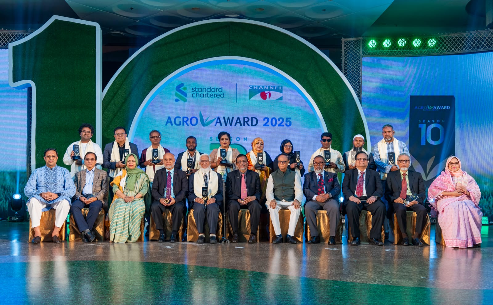 Standard Chartered Bangladesh and Channel i celebrated the remarkable achievements and pioneering spirit of individuals and organisations shaping the future of the nation’s agriculture sector at the Standard Chartered–Channel i Agrow Award 2025, marking its landmark 10th season.