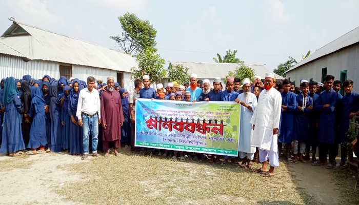 কাজিপুরে ‘যমুনা’ উপজেলা গঠনের দাবিতে শিক্ষক-শিক্ষার্থীদের সমাবেশ ও মানববন্ধন