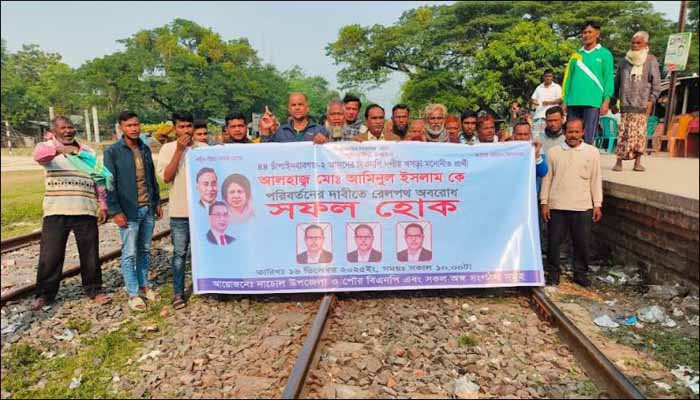 চাঁপাইনবাবগঞ্জ-২ আসনে বিএনপির প্রার্থী পরিবর্তনের দাবিতে রেলপথ অবরোধ