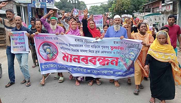 এছাড়াও মানববন্ধনে নিহতের স্বজন উজ্জ্বল, জাকির হোসেন, শওকতসহ এলাকাবাসীর অভিযোগ, সুমাইয়ার হত্যা ঘটনা পুলিশ মামলা নিতে গড়িমসি করছে কেন? আমরা চাই পুলিশ মামলা নিয়ে ঘটনার সুষ্ঠু তদন্ত করে জড়িতদের দ্রুত গ্রেফতার করে সঠিক বিচারের আওতায় আনা হোক।