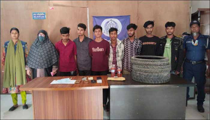 শিক্ষার্থীদের মিছিল চলাকালে ফটকের সামনে আগে থেকেই অবস্থানরত পুলিশ, আনসার ও নির্বাহী ম্যাজিস্ট্রেটকে সতর্ক অবস্থানে থাকতে দেখা যায়। এসময় শিক্ষার্থীদের কেউ কেউ পুলিশের দিকে এগিয়ে গেলেও অন্যরা মানবঢাল তৈরী করে পুলিশের উপর হামলা করা প্রতিহত করেন। পরে স্থানীয়রা যোগ দিলে পুলিশকে নিরাপদ দূরত্বে চলে যেতে দেখা যায়।